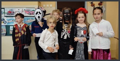 Tak jako loni se i letos brány naší školy otevřely tomu nejstrašidelnějšímu a nejtemnějšímu svátku, Halloweenu. Správný Halloween se však neobejde bez kostýmů a plnění tajemných úkolů. I když tento svátek už nějaký ten rok slavíme, pokaždé se objeví nové masky. Letošní rok tomu nebylo jinak. A podobné to bylo i s danými úkoly. Žáci devátých tříd si pro celý první stupeň připravili den plný záludných, originálních a různorodých stanovišť. Bylo jich celkem deset a poradit si se všemi vyžadovalo odvahu, kuráž a nebojácnost. Stanoviště prověřila malé dobrodruhy ve všech možných směrech. Děti si musely poradit se skládačkami i šiframi, najít různé potvůrky v lepkavém modrém slizu, překonat stezku odvahy, jejíž součástí byla i pavoučí síť. Poměřily své síly s překážkovou dráhou a jako mumie prošly cestou, kterou zakončily hodem dýní. Také vyráběly lektvary a míchaly čarovnou polévku. Domů si školáci mohli odnést i jimi ručně dělané výrobky, například zápich do květináče. Dokonce se i na chvíli děti dostaly do světa Harryho Pottera, neboť si vyzkoušely jízdu na koštěti. Za odměnu žáci kromě tradičních razítek, které dostali za každý splněný úkol, mohli na některých stanovištích získat i sladké bonbony nebo lízátka. O atmosféru tohohle svátku nemohli být samozřejmě úplně ochuzeni ani žáci druhého stupně. Pro ně byla vyhlášena soutěž o nejlepší kostým. Volba toho nejlepšího nebyla vůbec jednoduchá. Žáci rozhodně nešetřili kreativitou a o zajímavé nápady nebylo nouze. Dokonce se s vervou zapojili i někteří učitelé. Halloweenskou atmosféru ještě podtrhly svíčky, dýně a další věci. Doufáme, že děti ze školy odcházely s novými zážitky a příjemnými dojmy. Nejlepší způsob, jak jsme mohli zakončit náročný týden. Nebo snad ne? A teď už si musíme počkat na příští rok, než se dveře našeho jedinečného hradu opět otevřou. Fotografie zde.