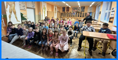 Ve čtvrtek naši školu navštívila policistka z oddělení prevence, která si pro žáky 1. a 2. ročníků připravila zajímavý a poučný program zaměřený na bezpečnost v silničním provozu. Cílem setkání bylo připomenout dětem, jak se správně chovat jako chodci i cyklisté, a naučit je rozpoznávat základní dopravní značky, se kterými se mohou setkávat každý den. Policistka dětem vysvětlila, proč je důležité být na ulici pozorný a soustředěný. Společně si povídali o tom, jak bezpečně přecházet silnici, co znamenají barvy na semaforu a jakou roli hraje přechod pro chodce. Děti si také vyzkoušely několik praktických situací – například jak se správně rozhlédnout před vstupem do vozovky. Velký zájem vzbudila část programu věnovaná cyklistům. Žáci se dozvěděli, proč je nezbytné nosit cyklistickou přilbu, jak má být vybavené jízdní kolo a jaké povinnosti má každý cyklista. Program byl veden velmi poutavou formou a děti se aktivně zapojovaly do všech aktivit. Kromě užitečných informací si odnesly také malé dárky s bezpečnostní tematikou. Děkujeme paní policistce za milou návštěvu, vstřícný přístup a cenné rady, které povedou naše žáky k bezpečnému chování na cestě do školy i mimo ni. Fotografie zde.